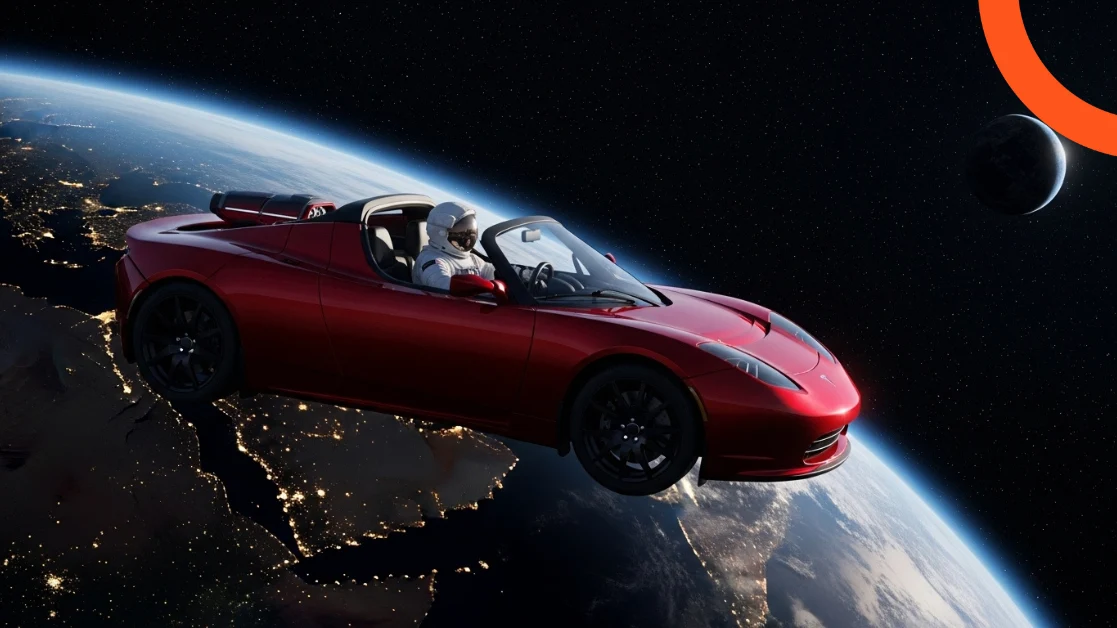 أول سيارة انطلقت للفضاء فعلياً هي تسلا رودستر الحمراء، ملك إيلون ماسك، وتم إطلاقها عبر صاروخ فالكون هيفي من شركة سبيس إكس في يوم 6 فبراير 2018 كحمولة تجريبية، وصارت تدور حول الشمس في مدار بيضاوي بعيد.