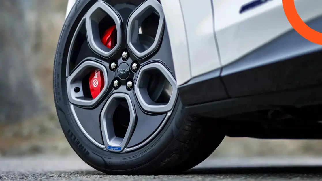 تُجهز ماك إي جي تي 2026 بإطارات بمقاس 20 إنش في إصدار كاليفورنيا سبيشل، بلون رمادي كربوني وطلاء أسود لامع يمنح السيارة حضورًا هجوميًا على الطريق. تبرز كتلة العجلات المكشوفة والأبعاد العريضة للإطار دورها في تعزيز ديناميكية القيادة والثبات، خاصة مع تصميم خاص للشعار GT/CS في وسط الجنوط. نوع الإطارات المستخدم (Michelin CrossClimate2) يمنح توازنًا بين الأداء الرياضي والراحة، كما يضمن مستوى عاليًا من الثبات في المنعطفات والفرملة. كل هذه التفاصيل تجعل الإطارات أساسية في هوية السيارة الديناميكية، وتساهم في تقليل الضجيج وزيادة الأمان.